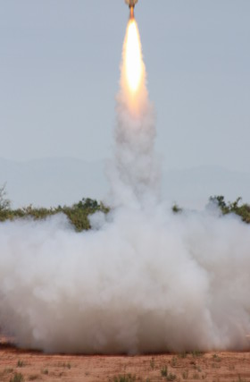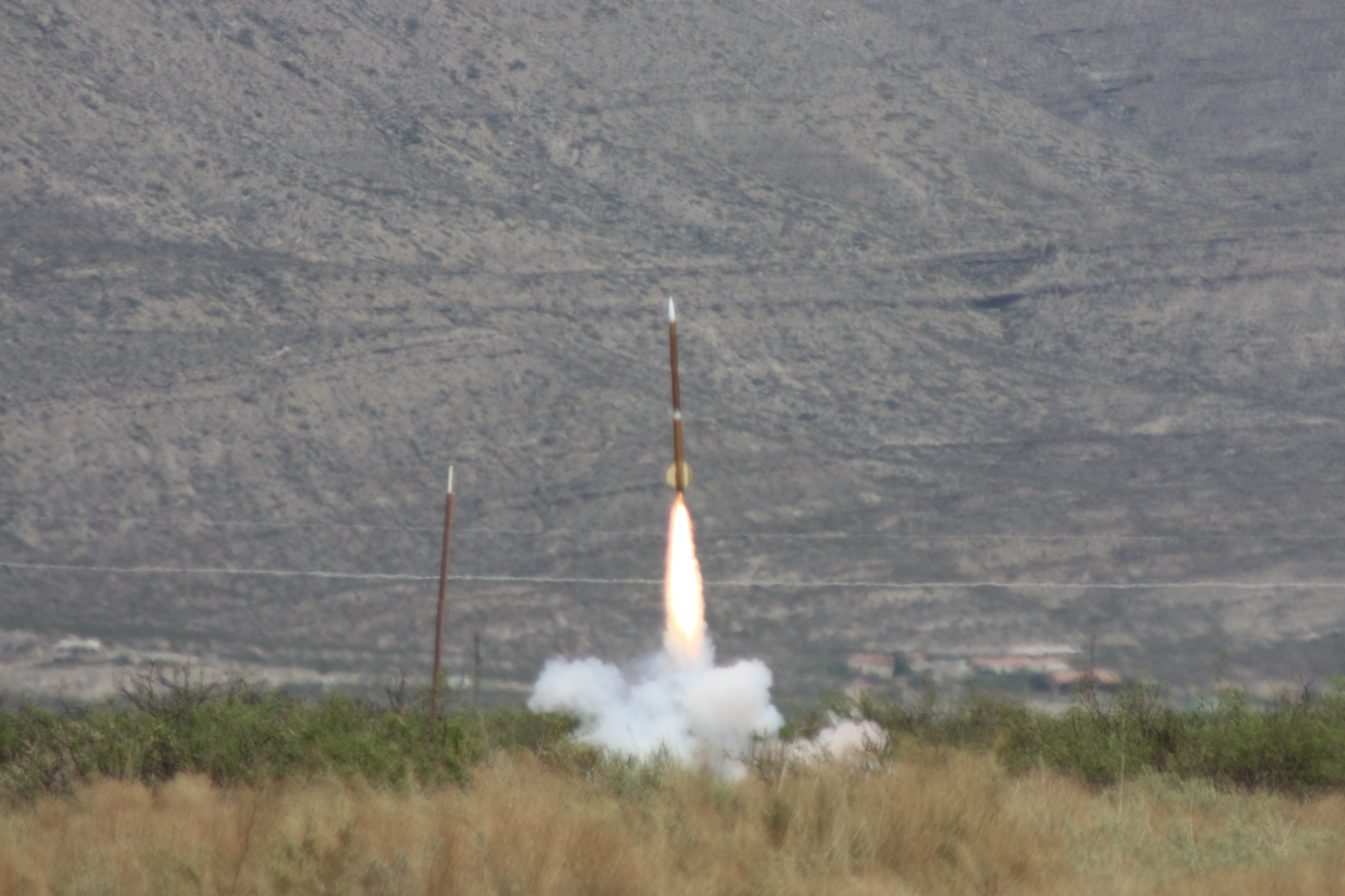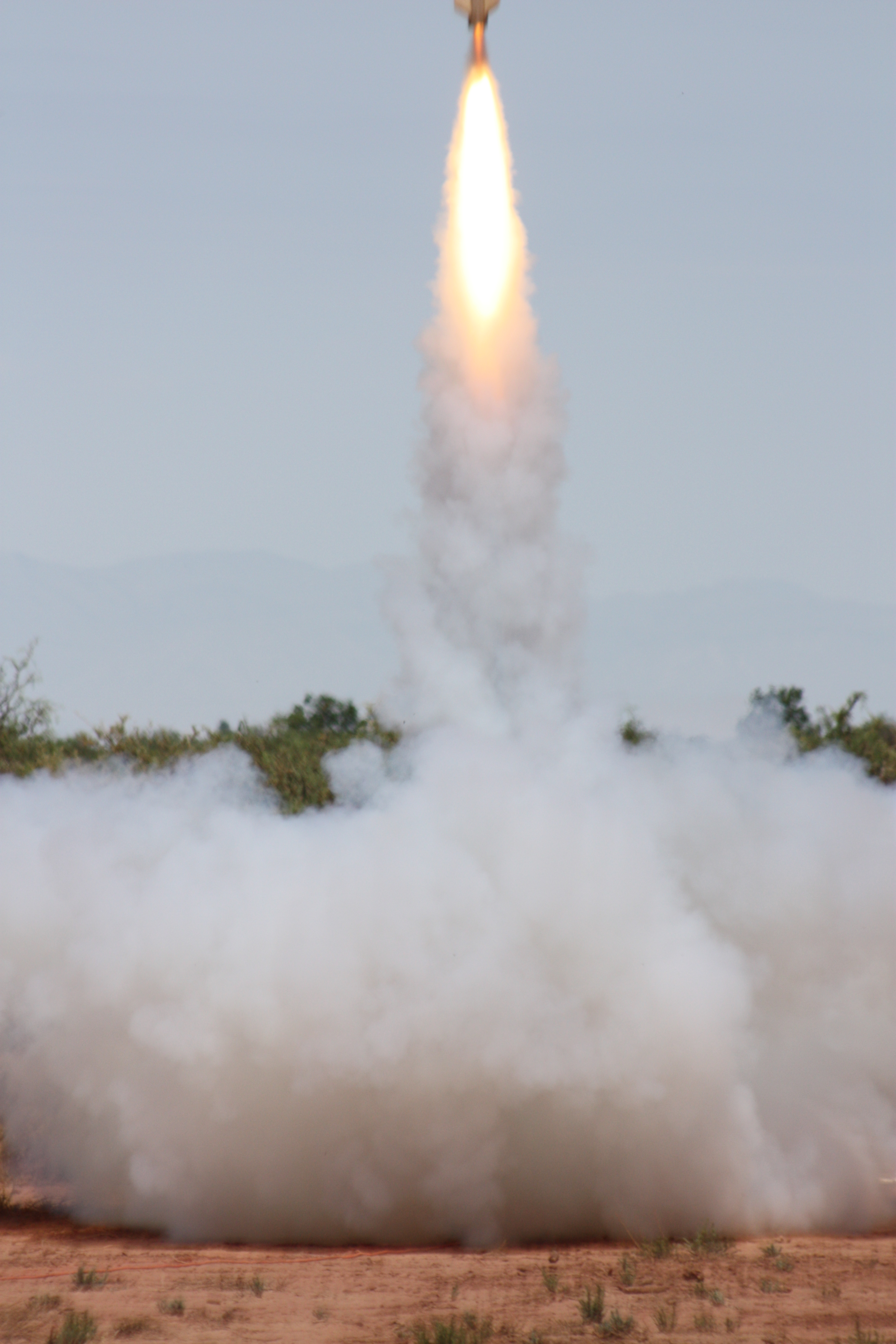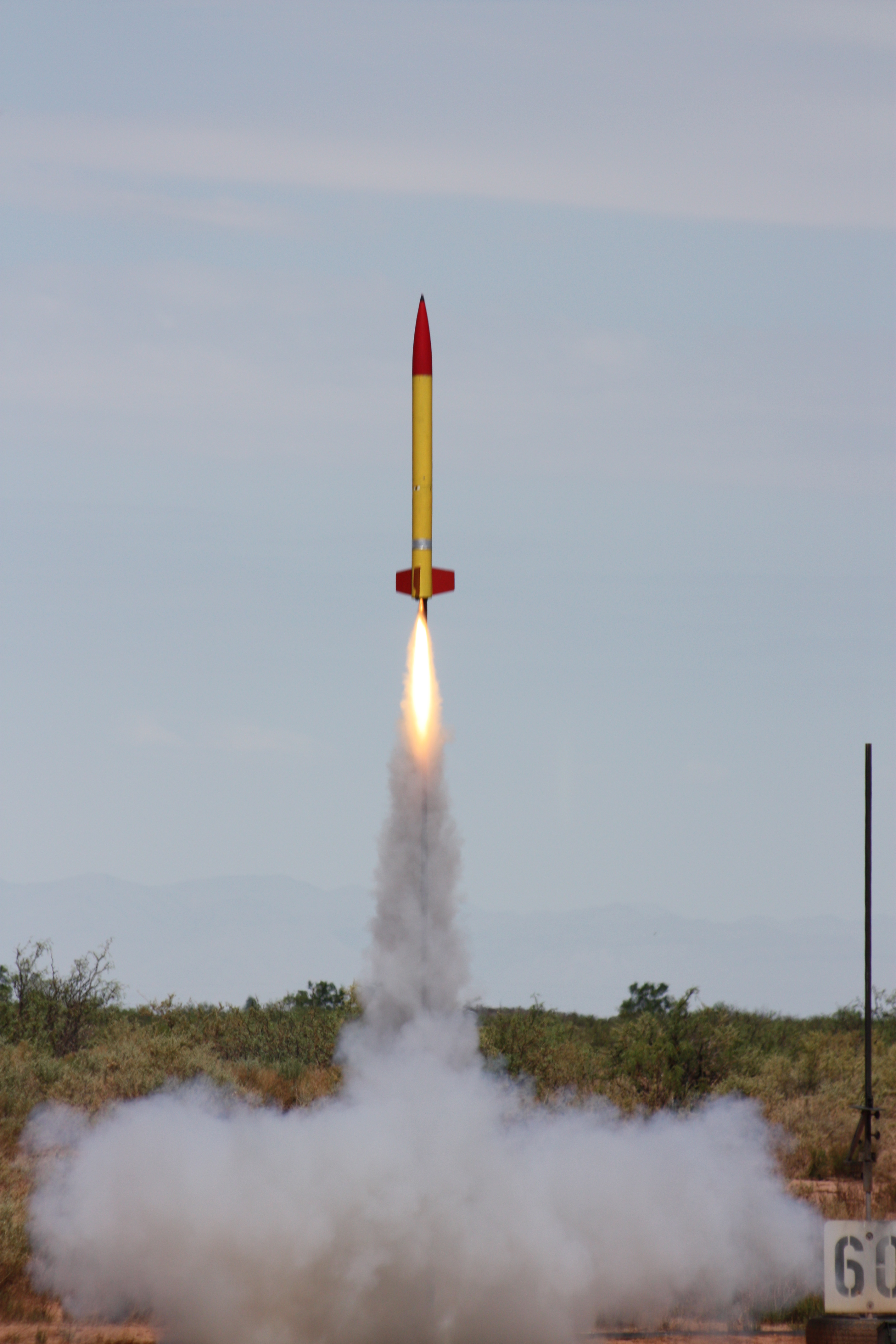 This was my first attempt at taking a picture of a rocket flying Aerotech's 'Warp 9' propellant. This was my Sacraficial Lamb rocket on an H999. At 1/400 of a second, it still is blurry...