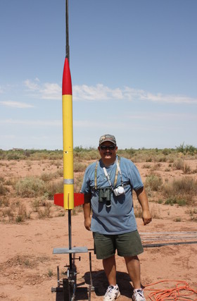 Here's Tony Jaramillo with his Ketchup and Mustard rocket. I forget what he is flying it on here.